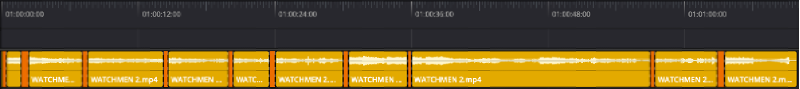 Por otro lado, se han analizado los sonidos y efectos extradiegéticos. Para diferenciarlo, hemos dividido el audio en subclips naranjas, para representar los ataques sonoros, y amarillos para representar el resto de sonidos extradiegéticos. Los ataques sonoros realizados mediante golpes fuertes de percusión, nos transmiten sensación de tensión, y es una buena manera de acaparar la atención e intriga del espectador, por ello se considera una de las herramientas principales para tráileres y resúmenes del contenido.
